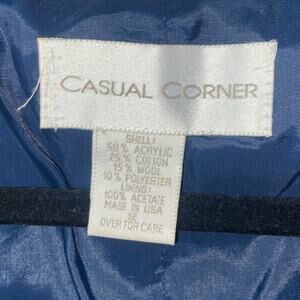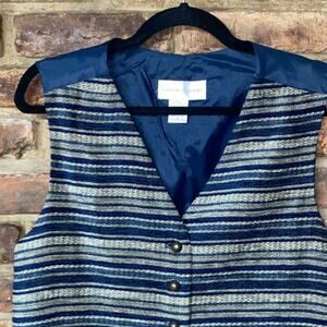 Casual Corner Navy Blue Striped Embroidered Button Down Vest Women's Size 12