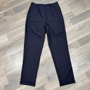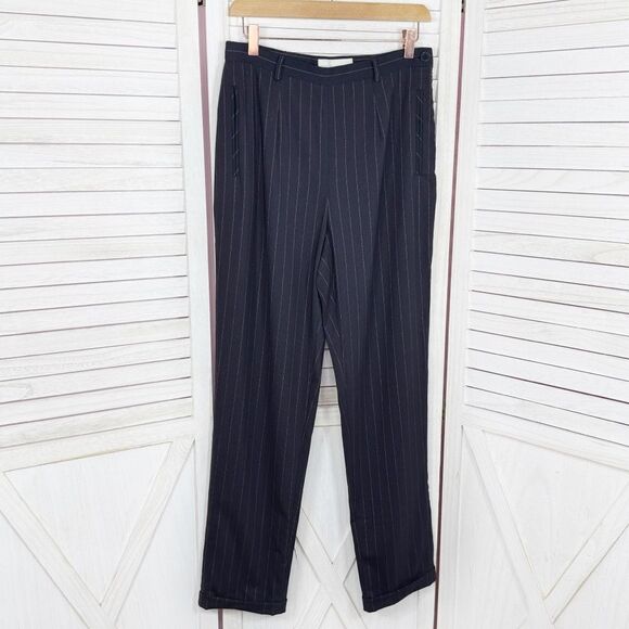 Casual Corner Pinstripe Cuff Hem Trouser Dress Pants Black 10