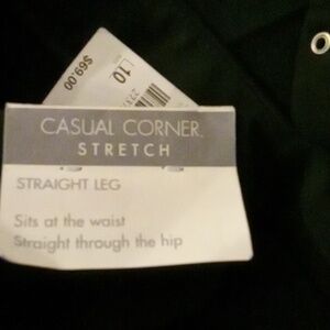 These stylish pants from Casual Corner feature a sleek straight leg design in a sophisticated silver and black color palette. Crafted from a structured material, they offer a comfortable fit that maintains its shape throughout the day. Ideal for both casual and formal occasions, these pants are a versatile addition to any wardrobe.