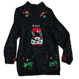 Casual Corner VTG Ugly Christmas Sweater Confetti Jingle Bells Black Size M