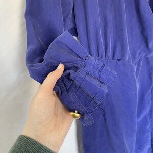 This Vintage Casual Corner silk wrap dress offers a timeless and elegant look. Its royal blue hue and flattering silhouette make it a stylish choice. Please note any flaws in the photos.