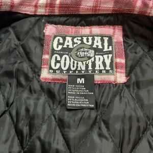 Elevate your wardrobe with this stylish Casual Country shacket in red and white plaid. The button-up shirt has a cutaway collar and long sleeves, making it suitable for casual, formal, workwear, and business occasions. Made from high-quality cotton flannel fabric, it features button accents and pockets for added convenience. This shacket is a size medium, with a chest size of 40 inches, and a regular fit that suits most body types. The Western-themed shirt is perfect for all seasons, and it was produced in Pakistan. All measurements are taken flat and are approximate