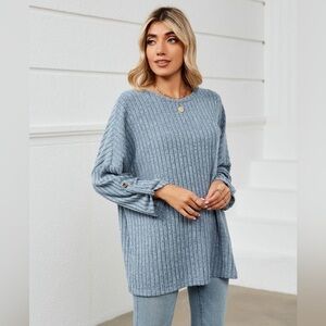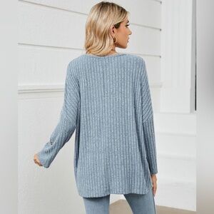 Features: Ribbed Texture, Long Sleeve, Round Neck, Front Chest Pocket, Casual Style, Relaxed Fit, 65% rayon, 35% polyester, 5% spandex