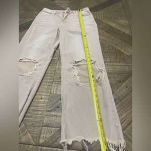 Step out in style with these casual distressed boyfriend jeans in a soft pink hue. Perfect for a laid-back yet chic look.