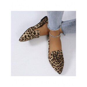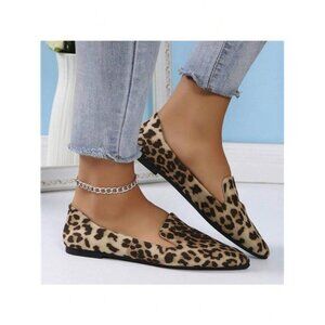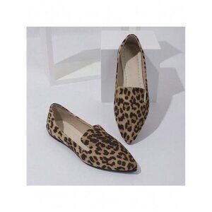 Casual Flat Shoes, Leopard Print, Breathable And Versatile Soft Pointed Loafers