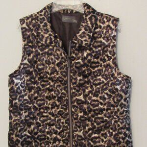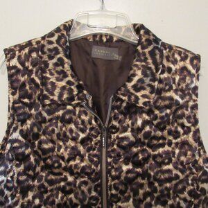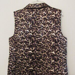 Casual Identity Animal Print Puffer Vest Women's Sz Large Lined Full Zip Leopard