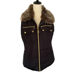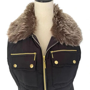 Casual Identity Lightweight Quilted Women Black Detachable Fur-Collar Vest Sz M