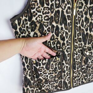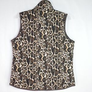 Casual Identity Women Size M Puffer Vest Leopard Animal Print Quilted Zip Pocket