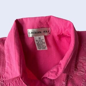 Casual Isle 80s Floral Jacquard Knit Polo Top Pink Banded Waist Sz M