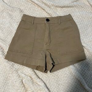 These shorts are super cute and flattering. Only selling because they don’t fit me anymore. Material has a decent thickness and holds its shape a bit. It’s also pretty soft.