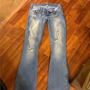 Embrace a relaxed style with these light blue distressed boyfriend jeans. Perfect for a laid-back, trendy look.