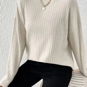 Casual Long Sleeve Crew Neck Pullover Top (Color: Sand)