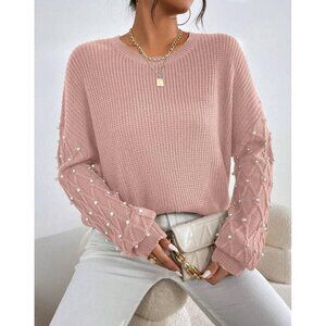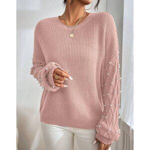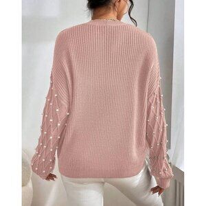 This casual pink pearl round neck drop shoulder top offers a chic and stylish look. Crafted from soft, high-quality material, it provides a comfortable fit for all-day wear.