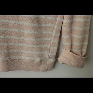Soft baby pink and white striped sweater. Soft and worn, but in good shape.