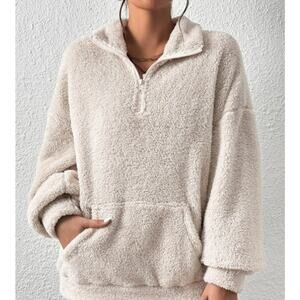 Casual Plush Stand Collar Pocket Sweatshirt | Size Medium | Chicgenes
