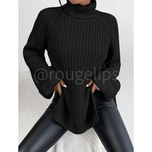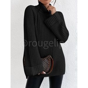 Casual Pullover Sweater Cable Knit Turtleneck Black High Neck Long Sleeve