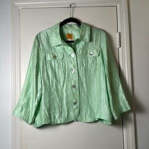 Casual Ruby Rd. Iridescent Green Button Up Spring Jacket Size 16