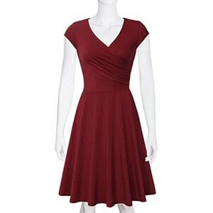 This casual dress features surplice V neck and a fit and flare silhouette for all day comfort