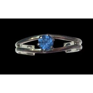 Casual Silver Tone Blue Stone Adjustable Ring Size 6 1/2