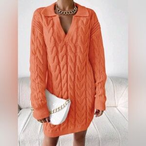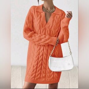 Casual Solid Color Drop Shoulder Knitted Dress, Autumn/Winter