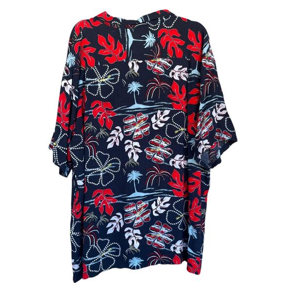 Casual Threads Shirt Mens 2XL Navy Blue Red Hawaiian Floral Rayon Camp Aloha