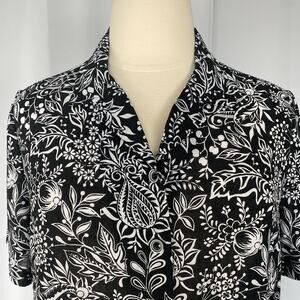 Casual Top Plus Size 18 Black White Floral Button Up Short Sleeve Boho Tropical