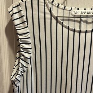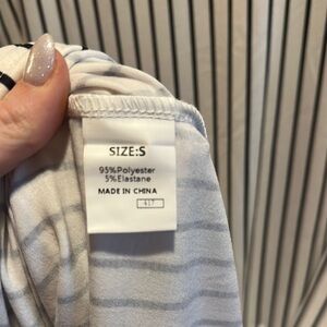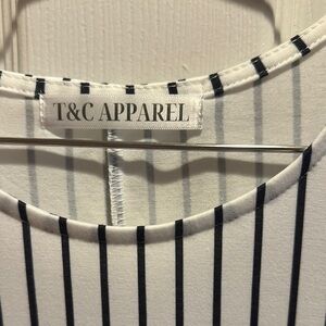 This sleeveless maxi dress features a crew neck and a sleek sheath style, perfect for casual outings. The dress is designed in a refreshing white and navy color palette, offering a relaxed yet elegant look. Its flowing fabric and simple silhouette make it a versatile addition to any wardrobe.