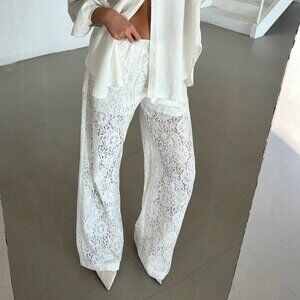 Casual Women's Lace See-Through Straight-Leg Pants