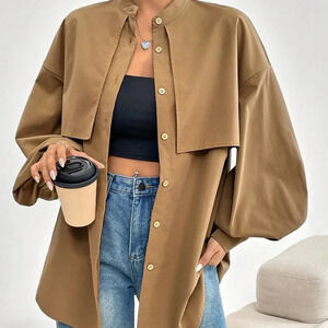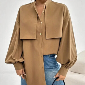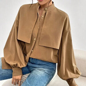 Casual Women's Lantern long Sleeve button down Blouse Tan