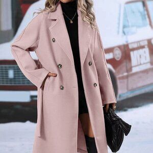 Casual Women's Lapel Neck Double Breasted Belted Jacket coat Dusty Pink