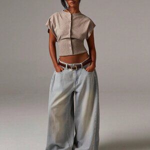 Casual Women's Minimalist Button-Front Batwing Sleeve Knit Sweater Vest
