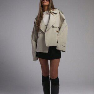 Casual Women's Oversized Tie Waist Short Trench Coat