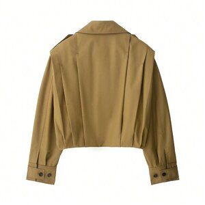 Casual Women's Pleated Jacket Long Sleeve Cropped Coat Trench Jackets Stre