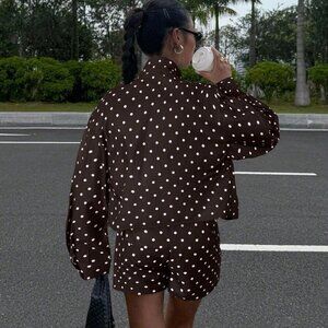 Casual Women's Polka Dot Print Long Sleeve Zip-Up Jacket & shorts set