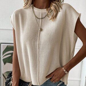 Casual Womens Solid Batwing Sleeve Sweater Vest Apricot