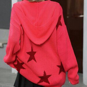 Casual Women's Star Print Drop Shoulder Loose Fit Hoodie knit Sweater
