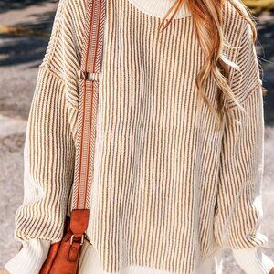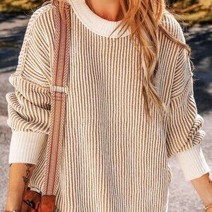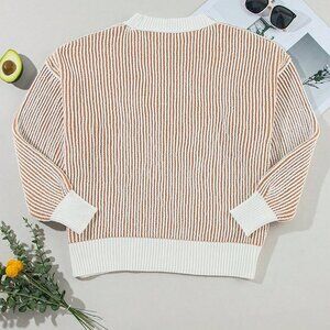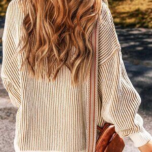 Casual Women's Striped Colorblock Loose Fit Round Neck Pullover Sweater top