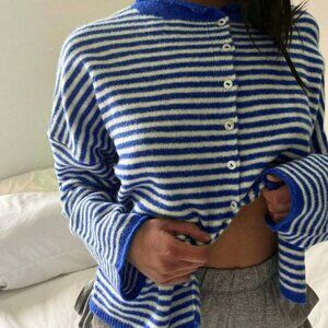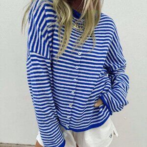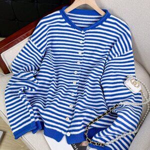 Casual Women's Vivid Style Street Loose Striped Knit Cardigan Sweater