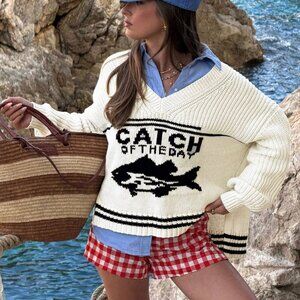 Casual Women's fun print Vneck Knit sweater