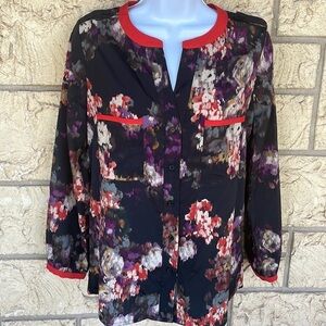 Casual career Floral Top Button Up Blouse Pockets Loose Fit Size XS