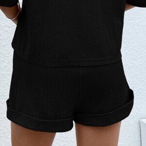 Casual comfy Batwing Sleeve Tee & Knot Front Shorts