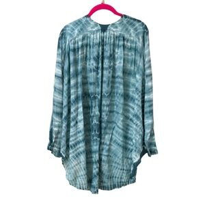 Casual stdio womens tie dye ombre long slevee top blouse green Size S NWT.