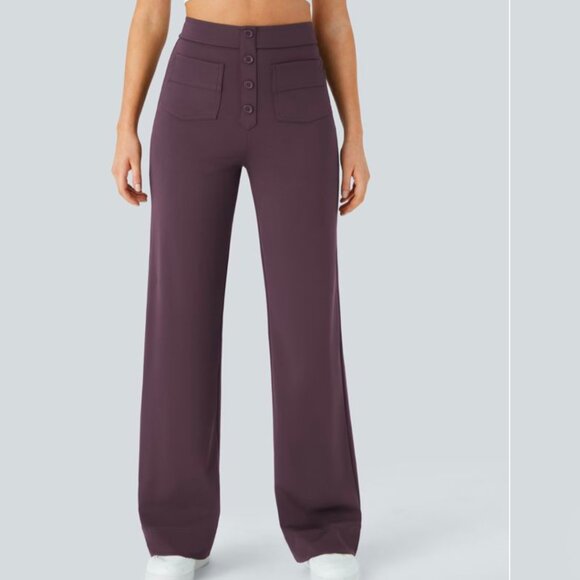 High-Waisted button multiple pockets straight leg casual pants from Halara in dusky evening purple. Only reason I'm selling is because I should have gotten the tall version. Tags attached, in original packaging.