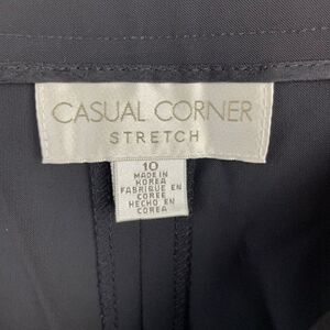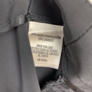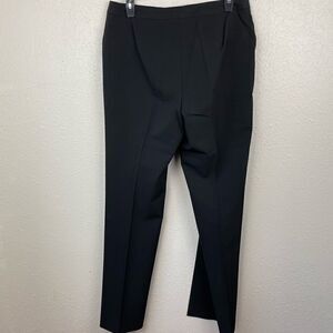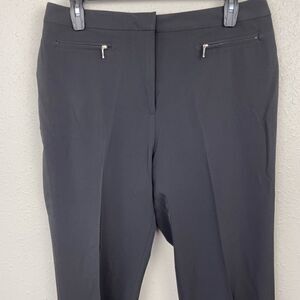 Classic pair of black stretch fit slacks featuring silver tone zipper pockets and in like new preowned condition. They measure 16 inches at the waist lying flat and have a 32 inch inseam.