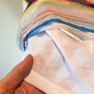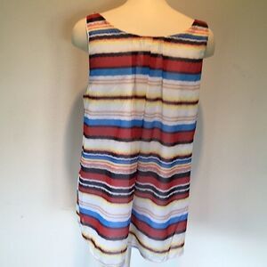 This is a two layer Casual Freedom top the undershirt is a white T-shirt and the top is a polyester striped sheer silk like fabric, size large.