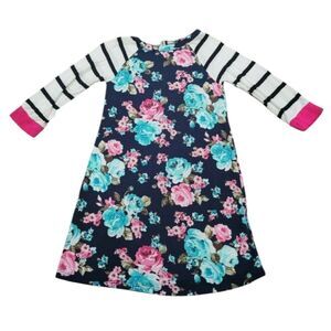 #casual #stripe #long sleeve #floral #flowers #pink #teal #navy #dress #girl #toddler