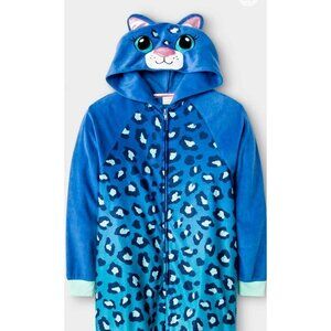 Cat And Jack Girls Spotted Dino Hooded One Pc Fleece Pajamas size L(10-12)