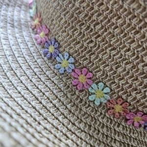 Cat And Jack Straw Floral Embroidered Sun Hat 12-24 Months NWT