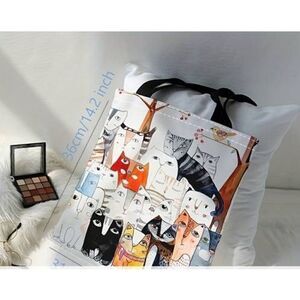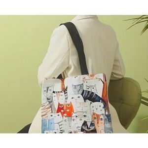 Cat Bag Tote Canvas Natural Red, Black Shoulder Strap OS 12x14" NEW