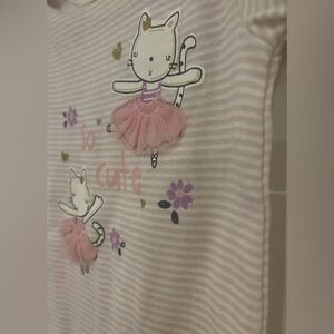 Gerber Baby Girls Cute Cat Ballerina Striped Bodysuit Pink.